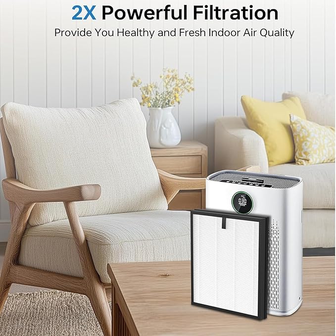 - [Package Include]: Package includes 2 pack white replacement filters. Each air purifier replacement filter provides last for 6 months of efficient air purification, reducing the frequency of replacements and maintenance.