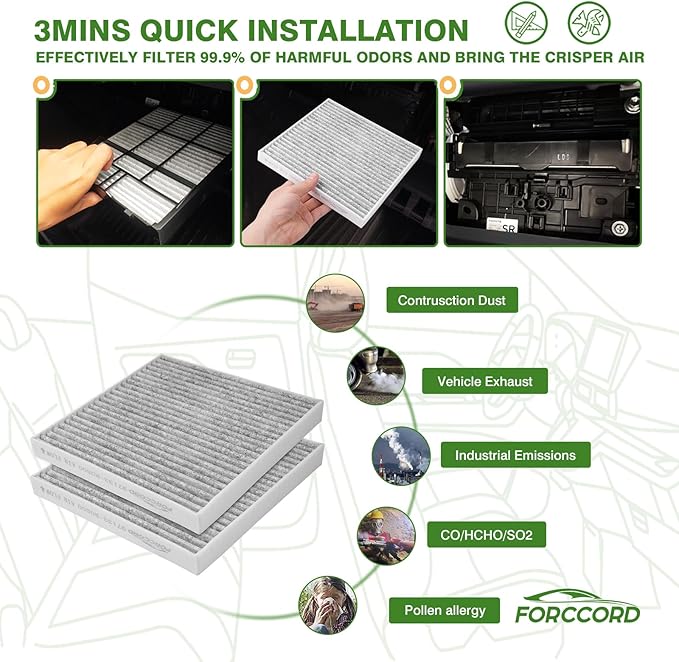 - 【2 Times Longer Life】Each package comes with two filters and can be used for 1-2 years.Each cabin air filters are engineered to last up to 20,000 miles, 30% longer than the standard performance of 12,000 miles
