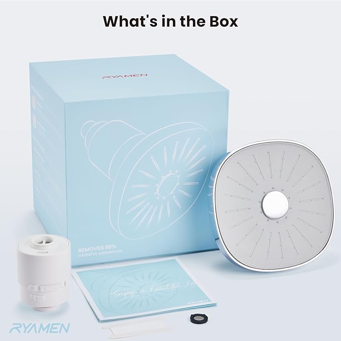 - Premium Quality Shower Filter: featuring a proprietary blend of KDF-55 and calcium sulfite, Ryamen shower filter far exceeds NSF-177 standards and lasts 2× longer than other filters. Shower water filter can effectively removes chemicals, sediments, and chlorine, purifying water for healthier hair and skin, helps reduce itchy skin, hair loss, and dryness