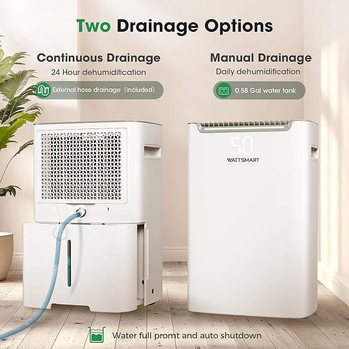 Dehumidifiers for Home with Drain Hose,75 OZ Water Tank, 4500 Sq.Ft 55 Pints Dehumidifiers for Basement, Bathroom, Bedroom, Three Modes, Smart Humidity Control, Dry Clothes, 24H Timer, White