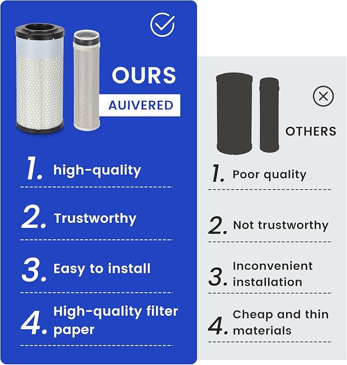 - 【HIGH-EFFICIENCY FILTRATION】- Using high-quality filter materials, the multi-layer composite structure effectively intercepts dust and impurities in the air, the outer filter initially intercepts large particles, and the inner filter deeply purifies tiny particles, providing pure air for the engine and ensuring efficient operation of the equipment.
