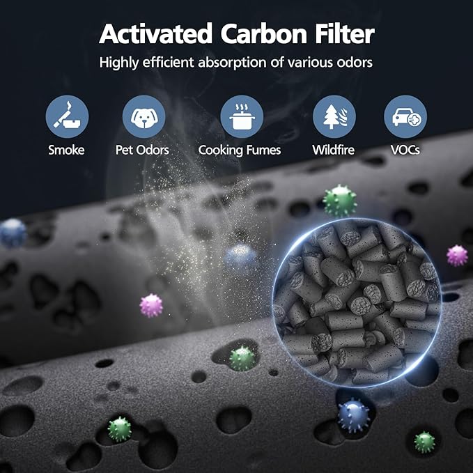 - ใ๐๐๐ญ๐ข๐ฏ๐๐ญ๐๐ ๐๐๐ซ๐๐จ๐ง ๐ ๐ข๐ฅ๐ญ๐๐ซใFull of activated carbon content for excellent odor filtration, absorb household odors from cooking, smoke and pets odors, maxium prolong the HEPA Filter lifespans