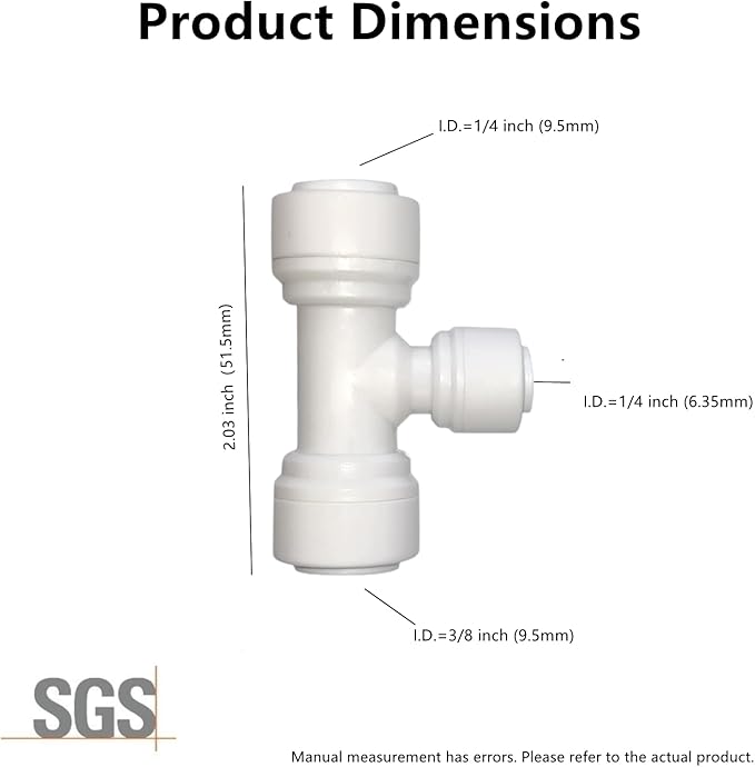 - ✅ Precision Fit : 3/8 inch x 3/8 inch x 1/4 inch T-shaped 3-way connector ensures leak-proof connections for RO water systems.