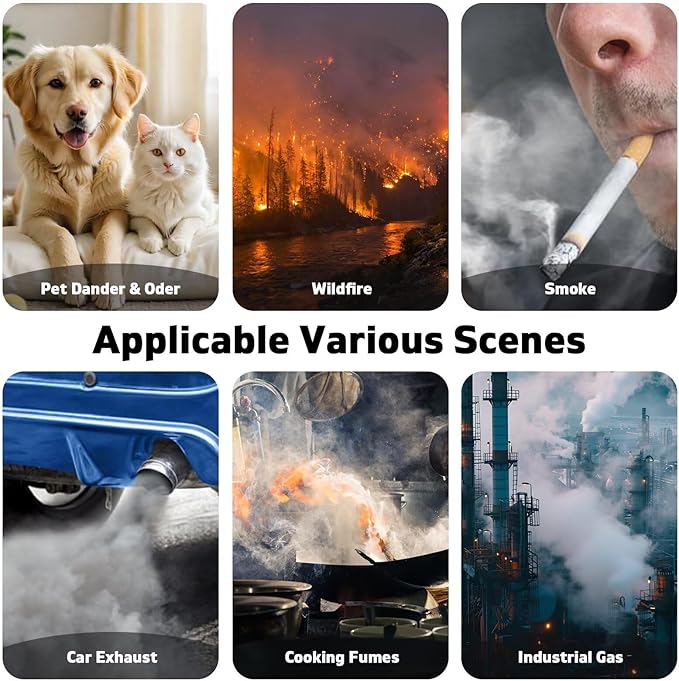 - 【High-Efficiency Filtration】Featuring H13 True HEPA technology, our filter captures 99.97% of airborne particles as small as 0.1 microns—including dust, pet dander, pollen, and smoke.The activated carbon filter helps to eliminate common household odors like pet smells, smoke, and cooking fumes