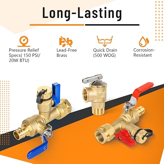 - PACKAGE INCLUDE: 1 Tankless Water Heater Service Kit-Each kit contains one set of 3/4" FIP x 3/4" PEX-A Expansion Hot & Cold Isolation Valves and one Pressure Relief Valve.