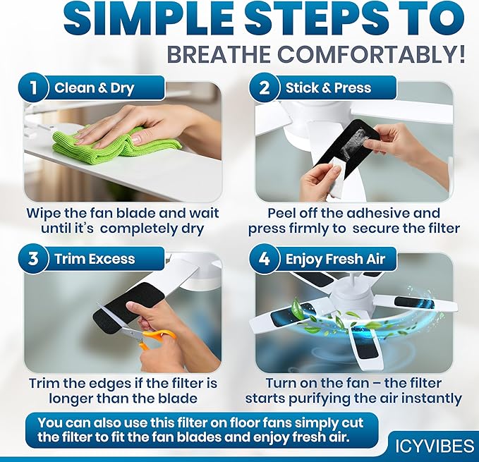 - ๐๐ฎ๐๐ ๐๐ผ ๐๐ป๐๐๐ฎ๐น๐น ๐ฅ๐ฒ๐๐๐ฎ๐ฏ๐น๐ฒ ๐ฆ๐๐ฎ๐ฟ๐๐ฒ๐ฟ ๐๐ถ๐: No tools needed just stick on, peel off, rinse, and reuse. This reusable filter kit serves as an effective starter solution to keep your ceiling fan clean and maintain a dust-free environment.