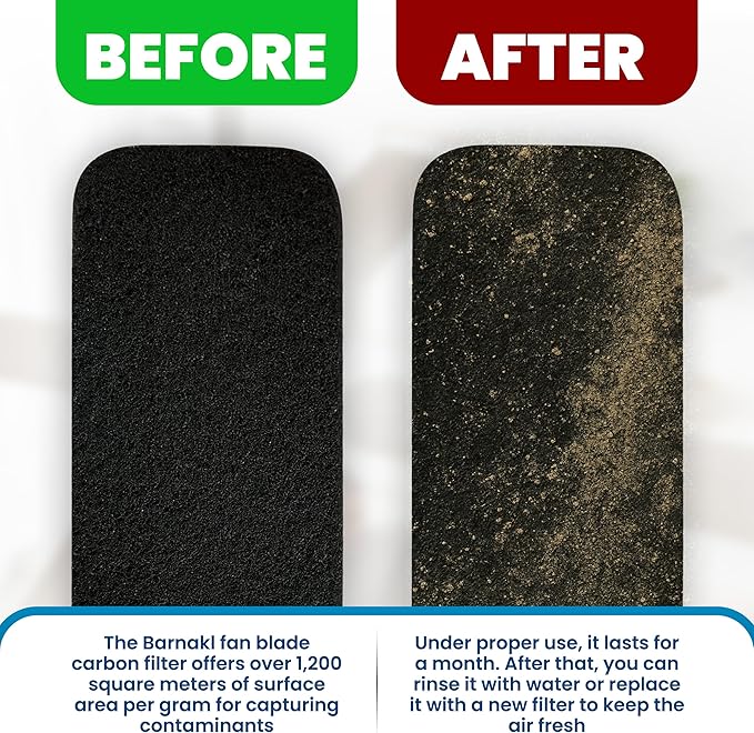 - ๐ฟ ๐๐๐ถ๐น๐-๐๐ป ๐๐ถ๐ฟ ๐ฃ๐๐ฟ๐ถ๐ณ๐ถ๐ฐ๐ฎ๐๐ถ๐ผ๐ป: Acts like an air filter while the fan blade spins, trapping odor and airborne particles through charcoal adsorption. Functions as an odor neutralizer and air freshener, ideal for any house or box-shaped fan setup, contributing to fresher, more breathable indoor air.