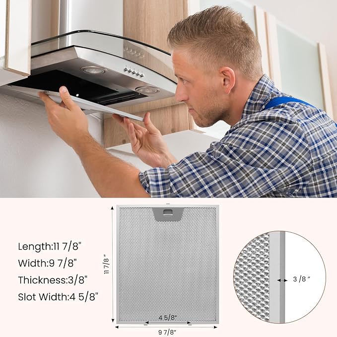 - Precise Fit - Dimensions: 11-7/8" L × 9-7/8" W × 3/8" H (30.1×25.1×1.0 cm); ensure compatibility by checking your hood size.