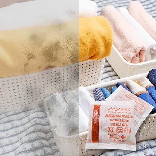 - 【Rechargeable】: The desiccant packets can be reactivated by placing into the oven for 1 hour at 230℉-250℉/(110℃-120℃). Depending on silica gel beads condition, they may take shorter than the recommended time. Please check the pack color.