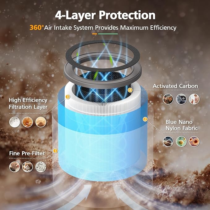 - ๐-๐๐ง-๐ ๐๐๐๐ข๐๐ข๐๐ง๐ญ ๐ ๐ข๐ฅ๐ญ๐ซ๐๐ญ๐ข๐จ๐ง - isinlive AP070A air purifi-er filt-er features 4 powerful layers: โ Fine Pre-Filt-er isolates large particles like hair and lint, โก Blue Nano Nylon attach dust, โขpowerful filtration layer attaches 99.9% of fine particles, โฃ Activated Carbon absorbs smoke, odors, and VOCs.