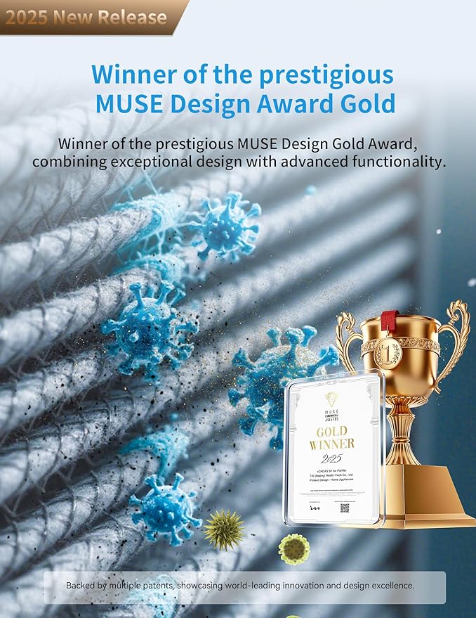 - Powerful 360° Whole-Room Coverage – Breathe comfortably with enhanced air circulation. Refreshes air up to 1937 ft² per hour thanks to a 360° air intake, delivering a continuous flow of freshly circulated air to every corner—from spacious living areas to basements.