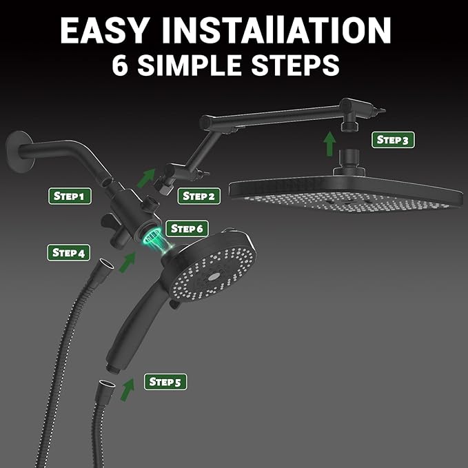 - Easy Tool-Free Installation: No plumber needed!The included detailed instructions and necessary installation accessories allow you to complete the installation in a short time, without the need for professional tools or skills. Whether you are replacing an old showerhead or installing a new one, you can easily get started. Even beginners can complete the installation in just a few minutes