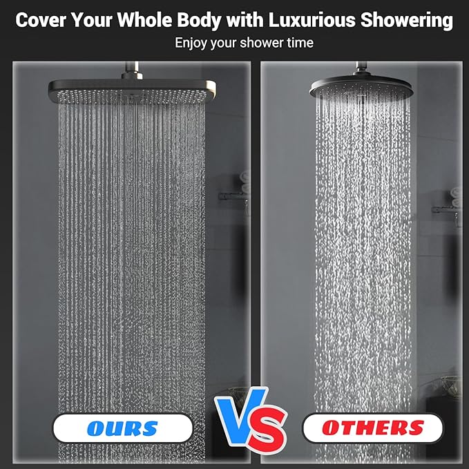 - Larger coverage shower heads with handheld spray combo, our large 12 inch square shower head allows for full body water coverage. Equipped with 10 spray settings hand held shower head, you can enjoy cozy showering, extra 2 different mode power jets can clean your pets or wash your bathroom and bath easily