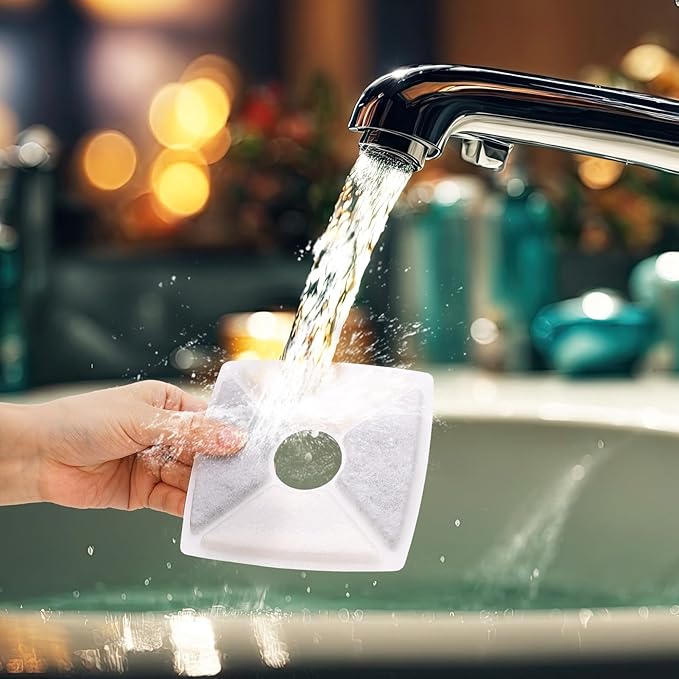 - Material: The pet fountain filter is made of activated carbon, filter cotton and lonic resin. They can filter hair, food residues, etc., which can effectively improve the taste of water, allowing pets to drink cleaner water, help increase water intake, and reduce the risk of urinary tract infections