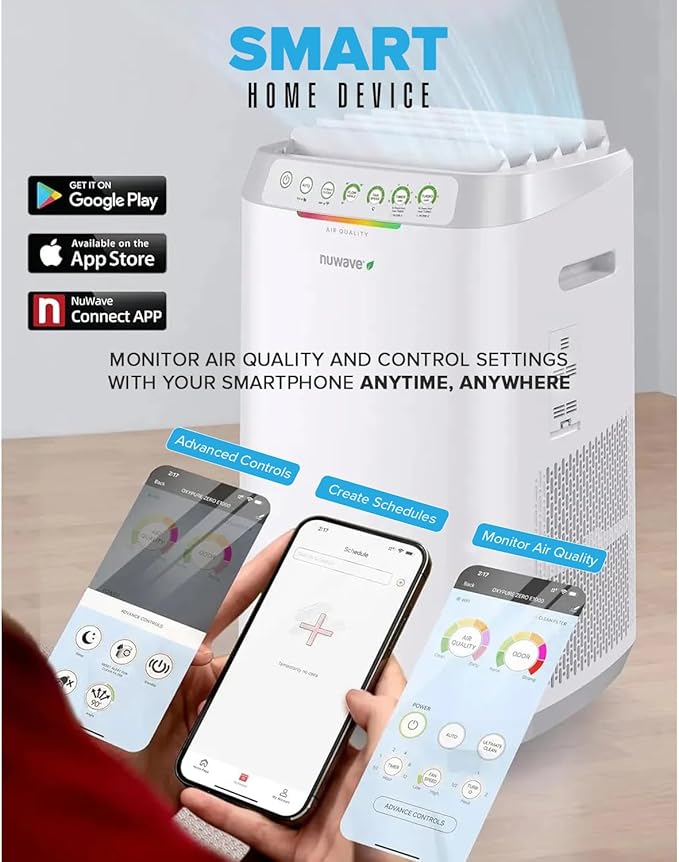- APP CONTROL ANYTIME, ANYWHERE – Connect the Nuwave Forever air purifier to your smartphone through the Nuwave app. Adjust modes, fan speed, and timers remotely to suit your lifestyle.