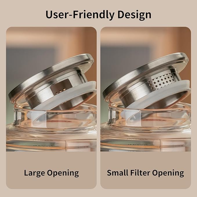 - 【100% STAINLESS STEEL LID WITH TWO OPENINGS】The lid is made of 100% stainless steel, so whether you use it for three or five years, you don't have to worry about the rust of the lid and the lid has two openings, which can be turned to pour water or the other side to filter beverages. The soft silicone seal keeps the lid firmly on the lid to prevent leakage.