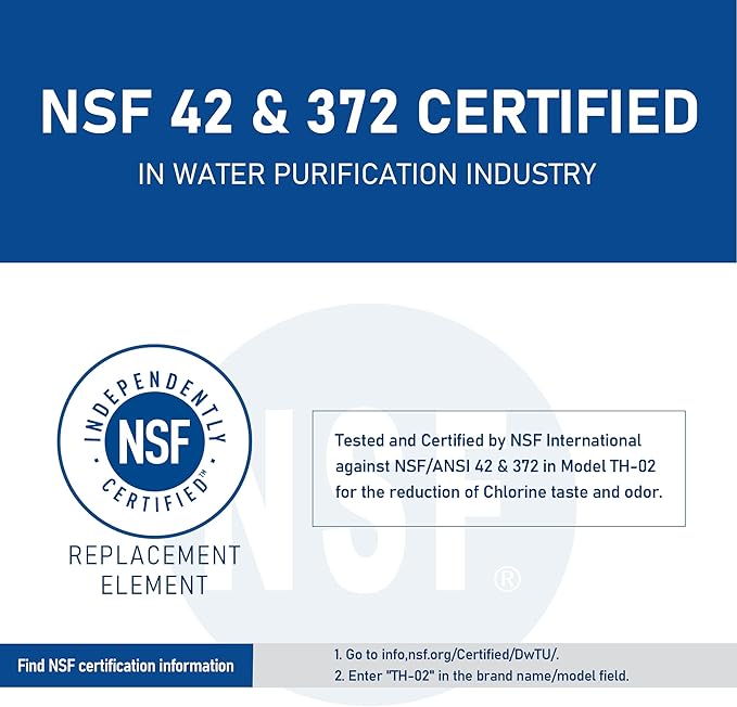 - External Testing Certification : NSF/ANSI 42 & 372