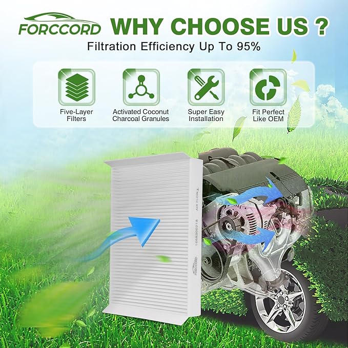 - 【5 Layers Newly Material】Compare with Standard cabin air filter, we adopts a newly upgraded large-capacity five-layer blue silk filter cloth+melt blown cloth, Double layer HEPA filter,which can remove 99.9% of harmful pollutants(dust, pollen,exhaust, etc)