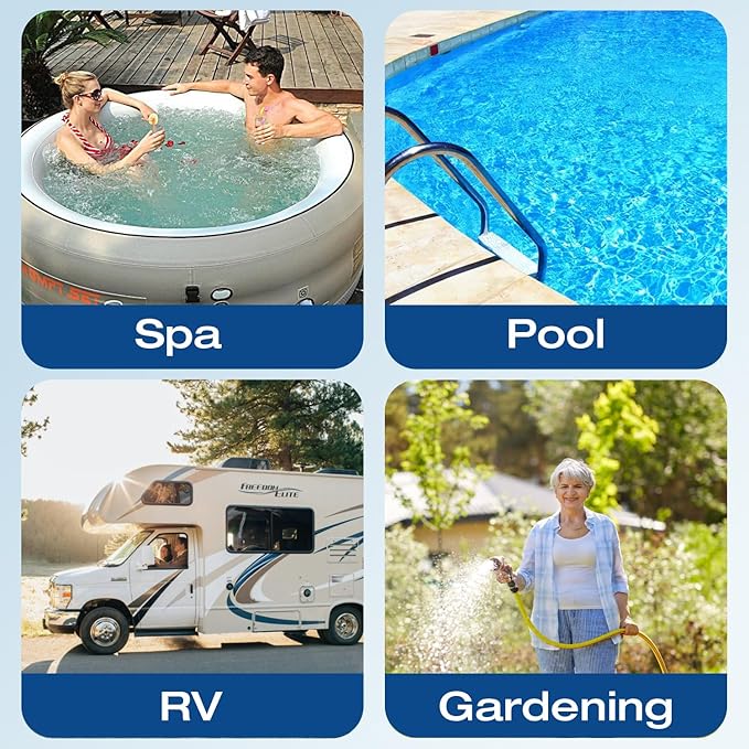 - Versatile Outdoor Water Solution:Designed for more than just pools—use it to filter well water for gardening, RV camping, or outdoor pet washing where clean, softened water is a must.