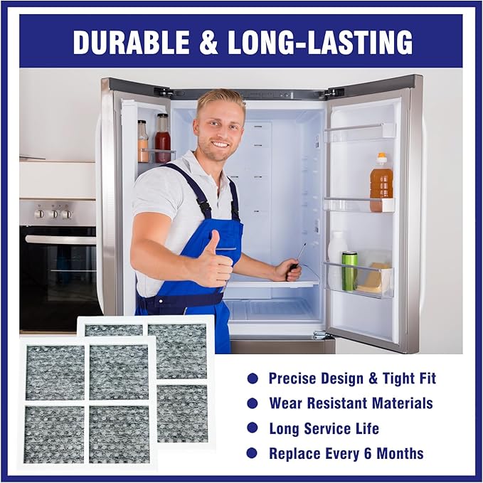 - DURABLE & LONG-LASTING - Made with wear-resistant materials, our refrigerator air filter built to endure daily use, offers reliable protection for up to 6 months. Replace every 6 months or when your refrigerator air filter indicator lights up