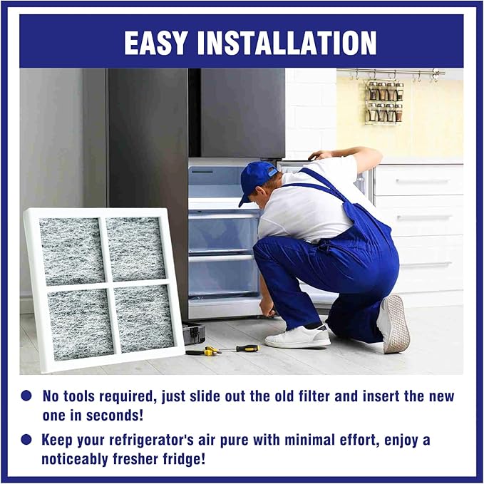 - EASY TO INSTALL & MAINTAIN - No tools required, just slide out the old filter and insert the new one in seconds! Keep your refrigerator's air pure with minimal effort, enjoy a noticeably fresher fridge!