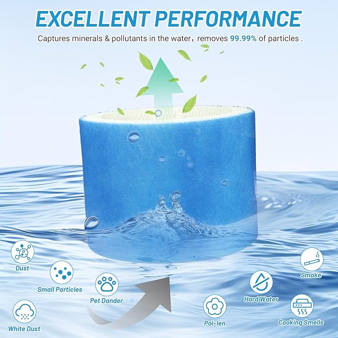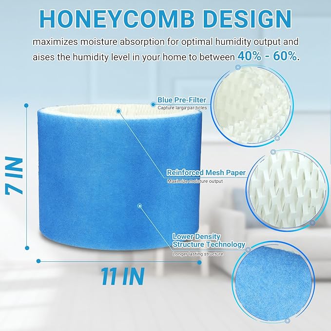 - UPGRADED PREMIUM MATERIALS – Made of upgraded durable professional filter paper with an added blue primary filtration layer for enhanced efficiency. HC14 replacement filters are designed with a honeycomb cushion that traps minerals and pollutants in the water to improve your breathing comfort, sleeping, nasal congestion and dry skin, as welll as maximize moisture absorption for optimal moisture output (40% - 60%) for a comfortable home environment.