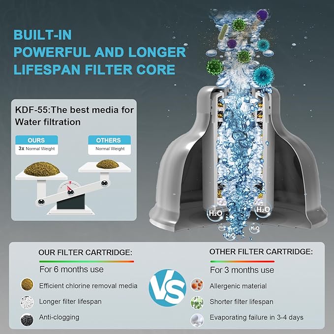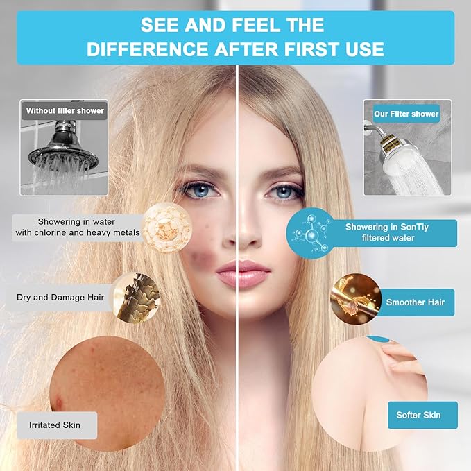 - Enhanced Shower Water Quality - Still struggling with dry hair and dry skin? Our water softener shower head filter focus on the basics of de-chlorination and impurity removal and uses scientific standard filling filter materials (included KDF, activated carbon, and calcium sulfite), effectively reduces chlorine, heavy metals and other sediments. NOTE: Our filter do not have other vitamins, minerals(whose efficacy does not last more than a week).