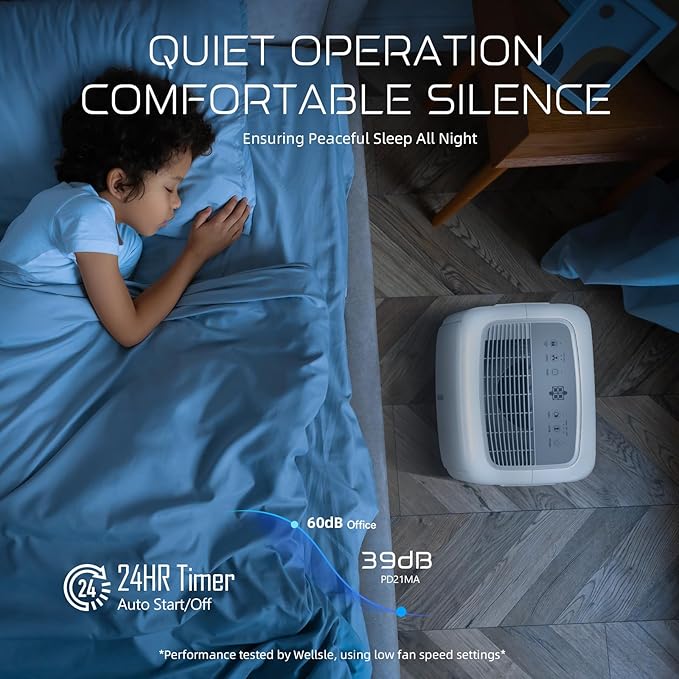 - šš³š³š¶š°š¶š²š»š šš²šµššŗš¶š±š¶š³š¶š°š®šš¶š¼š», š¦šŗš®šæš šš¼š»ššæš¼š¹: The Wellsle PD21MA dehumidifier keeps your home dry and comfortable, removing up to 52 pints per day under 95°F, 90% RH conditions. Smart humidity control ensures optimal performance with a setting range from 80% to 30%, ideal for basements, bedrooms, bathrooms, garages, kitchens, RVs, and offices.