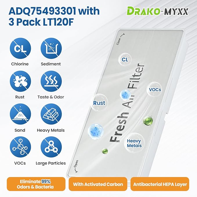 - ADQ75493301 Super Value Cover Decor :You will received one refrigerator cover decor with 3 pack LT120F refrigerator air filter replacement , save you money to buy LT120T refrigerator air filter