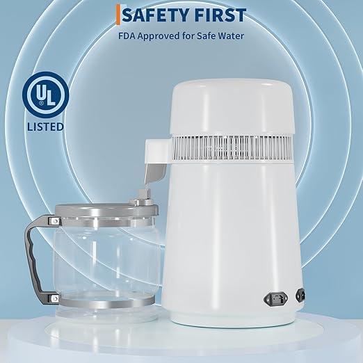 - One-Button Operation & Auto Shut-Off Safety: This distilled water machine starts easily with a single button, automatically shuts off at 230°F to prevent overheating, and maintains constant temperature control—perfect for safe, hassle-free distilling at home or office
