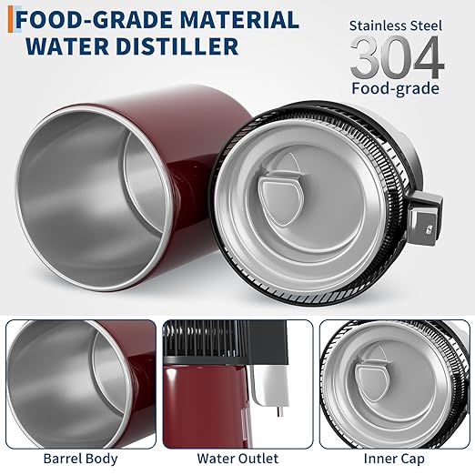 - One-Button Operation & Auto Shut-Off Safety: This distilled water machine starts easily with a single button, automatically shuts off at 230°F to prevent overheating, and maintains constant temperature control—perfect for safe, hassle-free distilling at home or office
