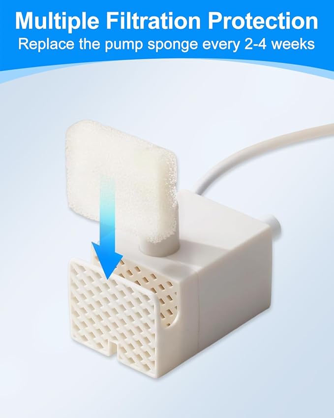 - For Cleaner Water: Pet fountain filter replacement should be changed approximately every 2 weeks in summer or 4 weeks in winter to maintain water freshness. (depending on the size and number of pet using the fountain