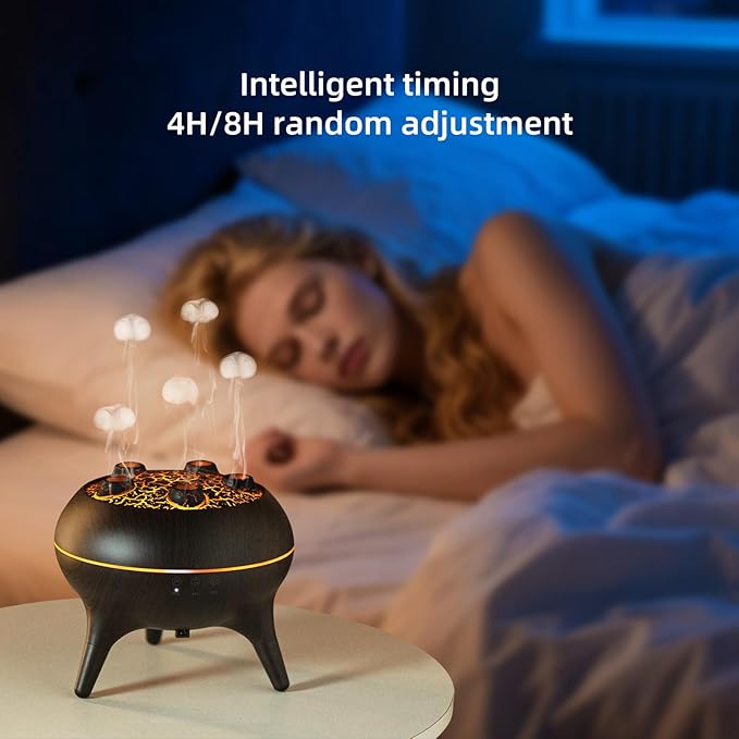 - Jellyfish-Inspired 5-Nozzle Mist Dispersion Featuring a unique biomimetic design with 5 umbrella-shaped mist outlets, this jellyfish diffuser mimics jellyfish movement to release ultra-fine mist, covering 3x wider areas than single-nozzle models. Features dynamic sound pickup technology that synchronizes mist output with ambient sounds. Paired with a 250ml water tank, it ensures 8-12 hours of rapid, even humidification for bedrooms, living rooms, or offices.
