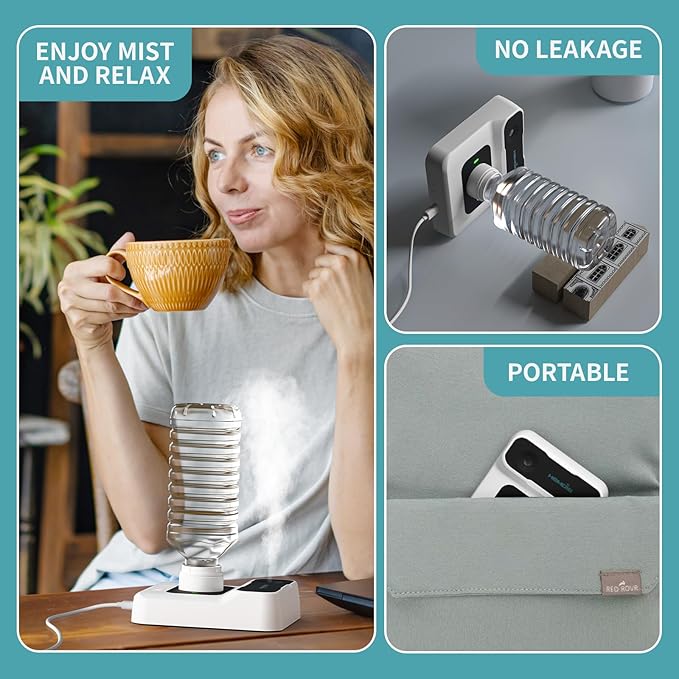 - ✅ Convenient & Hassle-Free - The mini humidifier use any standard bottle—no dedicated tank required. Say goodbye to tedious cleaning and enjoy effortless setup and maintenance.