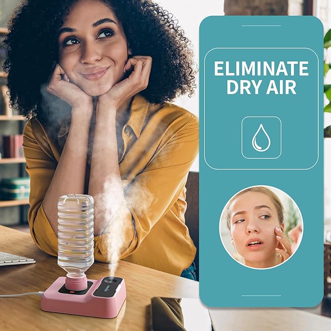 - ✅ Convenient & Hassle-Free - The mini humidifier use any standard bottle—no dedicated tank required. Say goodbye to tedious cleaning and enjoy effortless setup and maintenance.