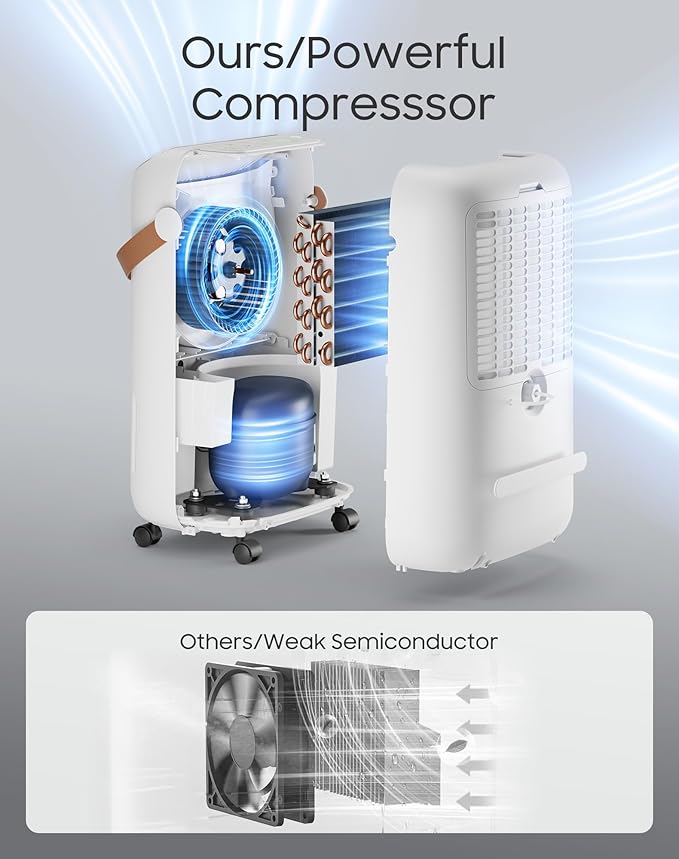 - 【 Most Efficient Energy Star 2025 Dehumidifier 】 This high-performance compressor dehumidifier can remove 45 pints of moisture in a day (95℉, 90% RH) with 30%-80% target humidity setting range, which efficiently maintains your home's ideal humidity level. Perfect for large spaces up to 4500 sq.ft, it ensures a comfortable environment whether in your basement, bedroom,bathroom or office, garage,RV.