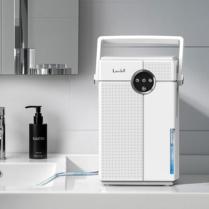 - 【Powerful & Whisper-Quiet Dehumidification】Featuring dual-semiconductor technology and dual air outlets, Lacidoll dehumidifier with drain hose removes moisture 2x faster, extracting up to 40oz of moisture per day (tested at 86°F, 80% RH) and effectively covering areas up to 800 sq. ft. Unlike traditional compressor dehumidifiers, our dehumidifier for bedroom come with an ultra-quiet 30dB sleep mode, ensuring a peaceful, undisturbed environment while keeping humidity at bay.